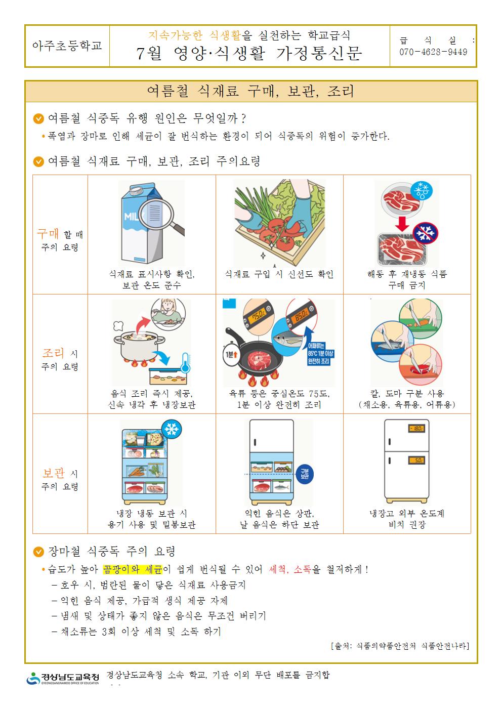 2024.7월 영양식생활 교육지(식중독 정보, 여름철식재료 구매보관조리)