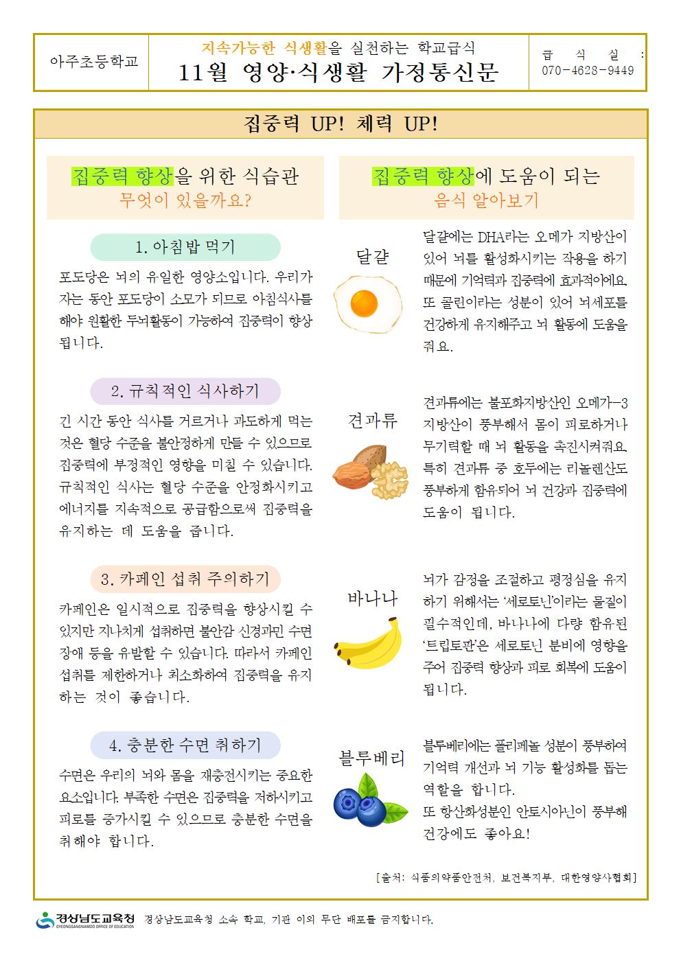 2024. 11월 영양식생활 교육(집중력UP체력UP, 면역력 높이기)